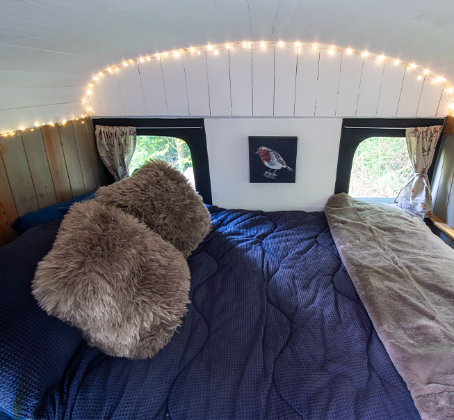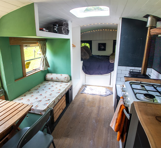 We were over the moon when they decided that Brenda could come and stay at The Hideaway for you all to enjoy. Completely converted to allow a great glamping experience. It sleeps two with all our usual comforts, wood burning stove, own shower and loo etc. And now with a new name too – Robins Roost, is the last piece of the puzzle and fits perfectly into our site.